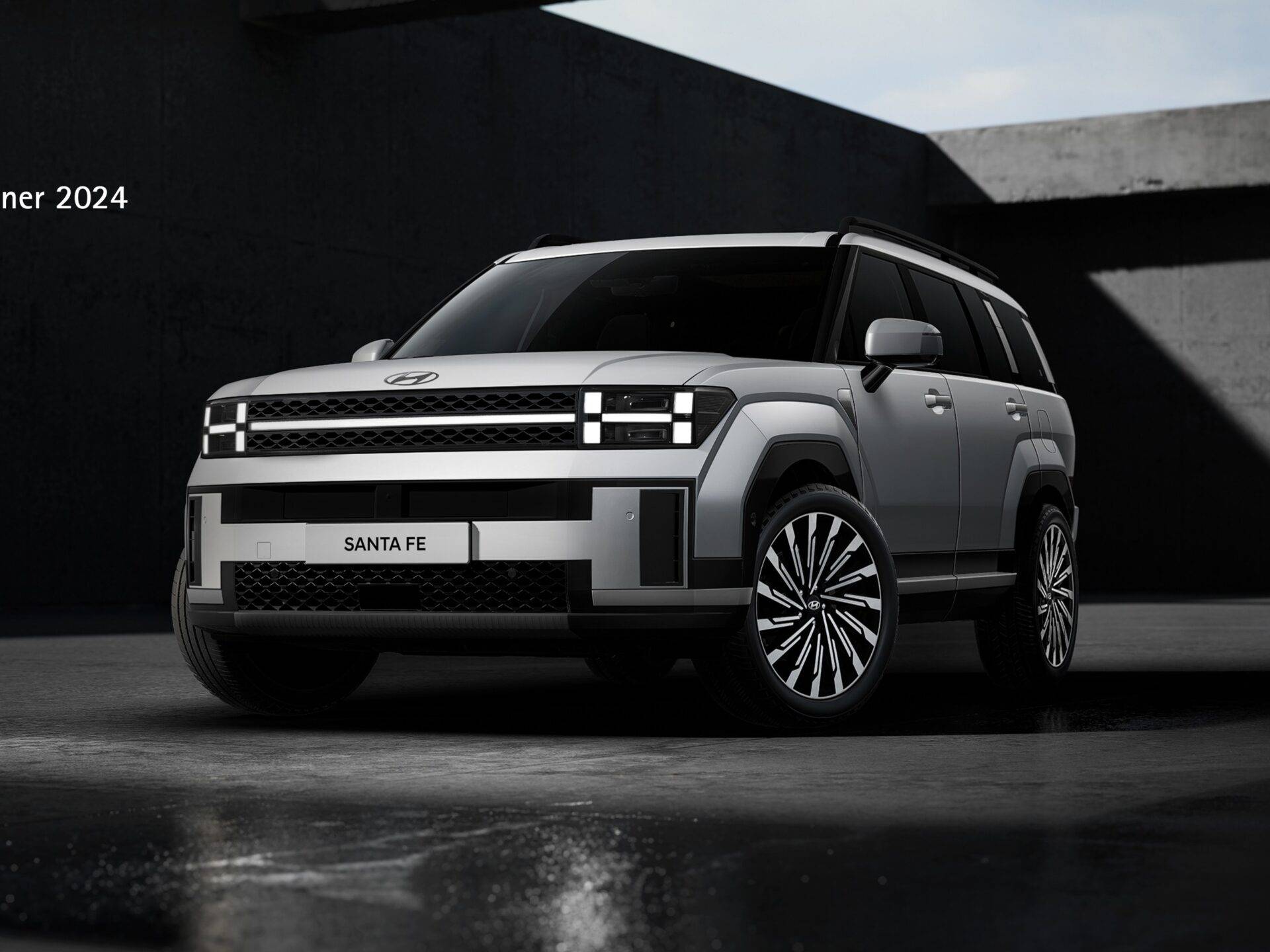 Изцяло новият SANTA FE се отличава с квадратна форма и отличителен силует, произтичащ от дългото междуосие и широката зона на задната врата. Предната част на автомобила създава величие с високия си преден капак, H-образни фарове и смели калници. Н-образните дизайнерски елементи преосмислят емблемата „H“ на Hyundai. Удълженото междуосие включва смела линия на покрива, мощен обем около калниците, рязко очертани калници, скъсен преден надвес и 21-инчови джанти. Задната част е балансирана и опростена с H-образни задни светлини.